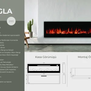 Pagla Elektrikli Şömine, modern tasarımı ve güçlü ısıtma kapasitesi ile yaşam alanlarınıza şıklık ve konfor katıyor. Gerçekçi alev efektleri ve kullanıcı dostu özellikleri sayesinde hem dekoratif hem de fonksiyonel bir şömine deneyimi sunar.